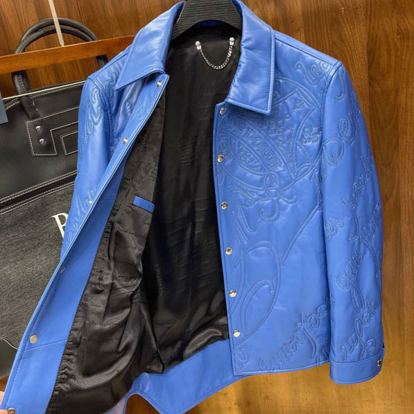 Áo da nam cổ đức da thật dập họa tiết siêu cấp