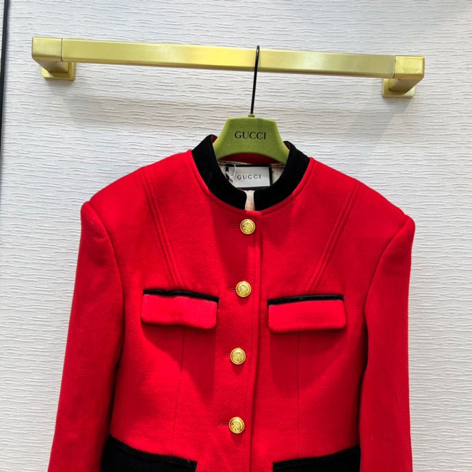 Áo khoác dạ nữ đỏ viền đen hiệu Gucci siêu cấp