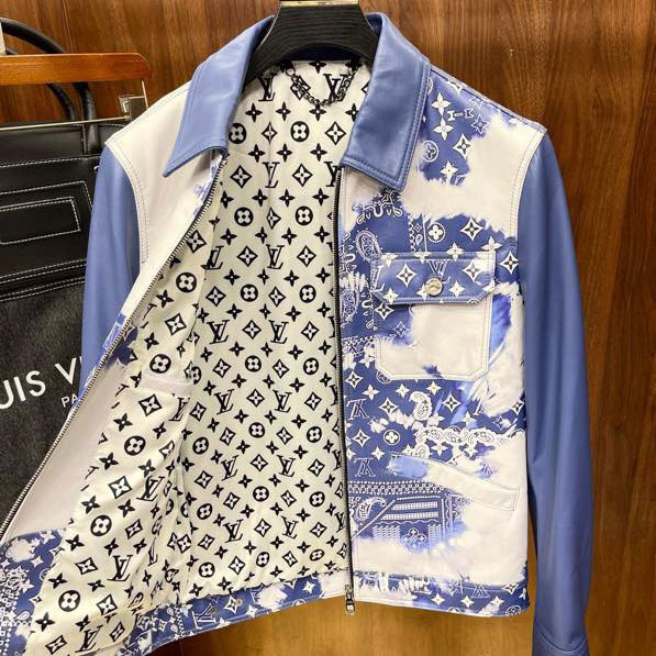 Áo khoác da cổ đức loát hoa nâu Louis Vuittion Likeauth