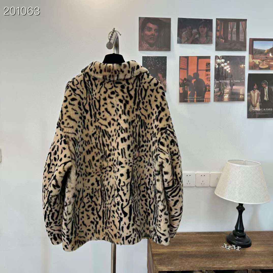 Áo da dáng bom cổ lông to vàng Dior cao cấp