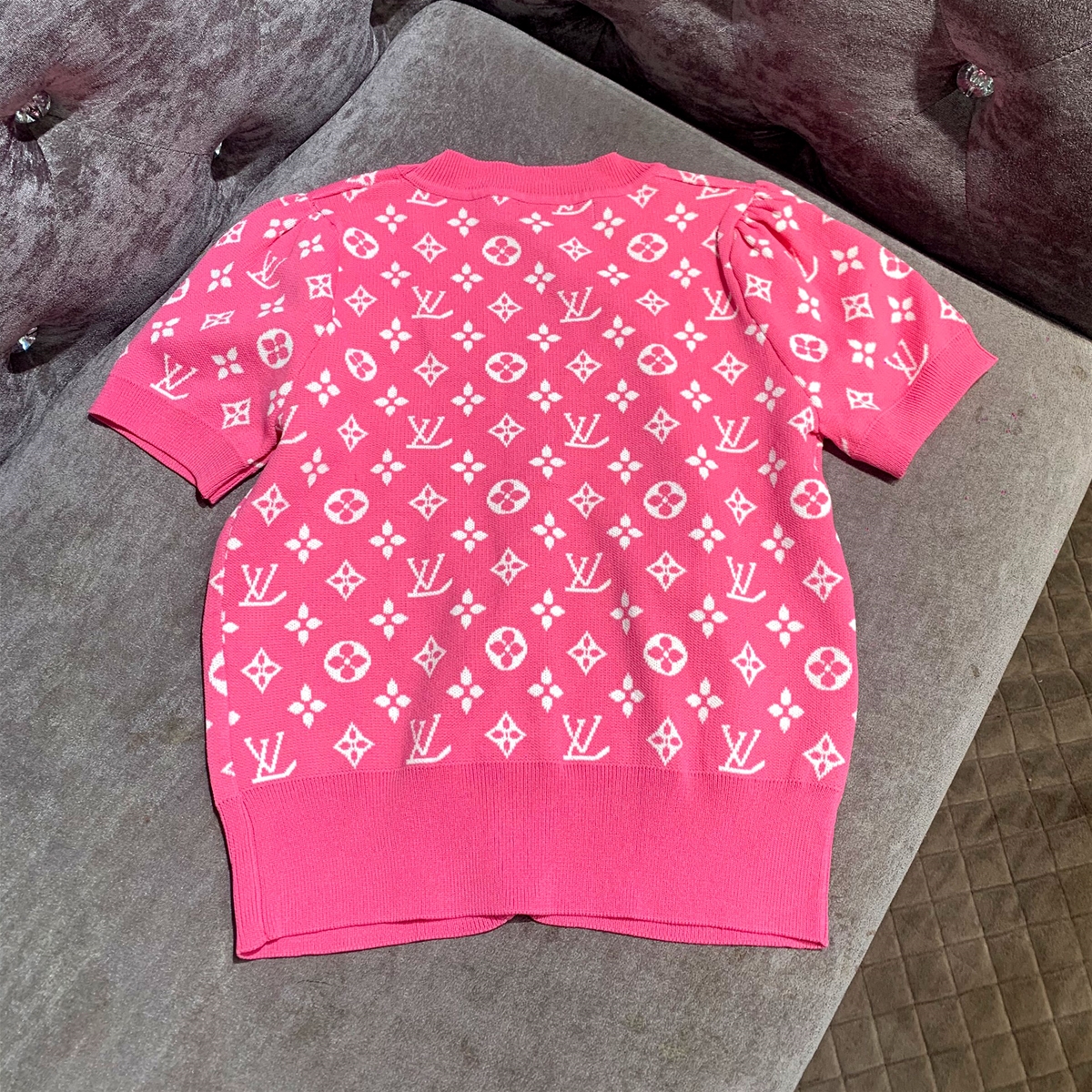 Áo len cúc nữ cổ tim hiệu LV cộc tay cao câp