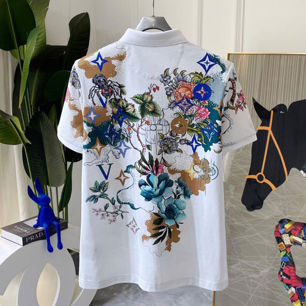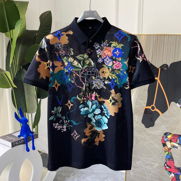 Áo nam cổ bẻ họa tiết hoa ngực hiệu Dior siêu cấp