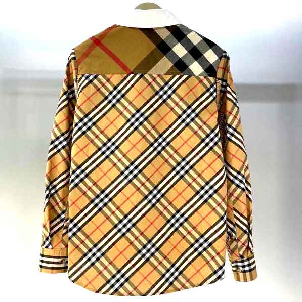 Áo sơ mi kẻ vàng phối cổ trắng hiệu Burberry cao cấp