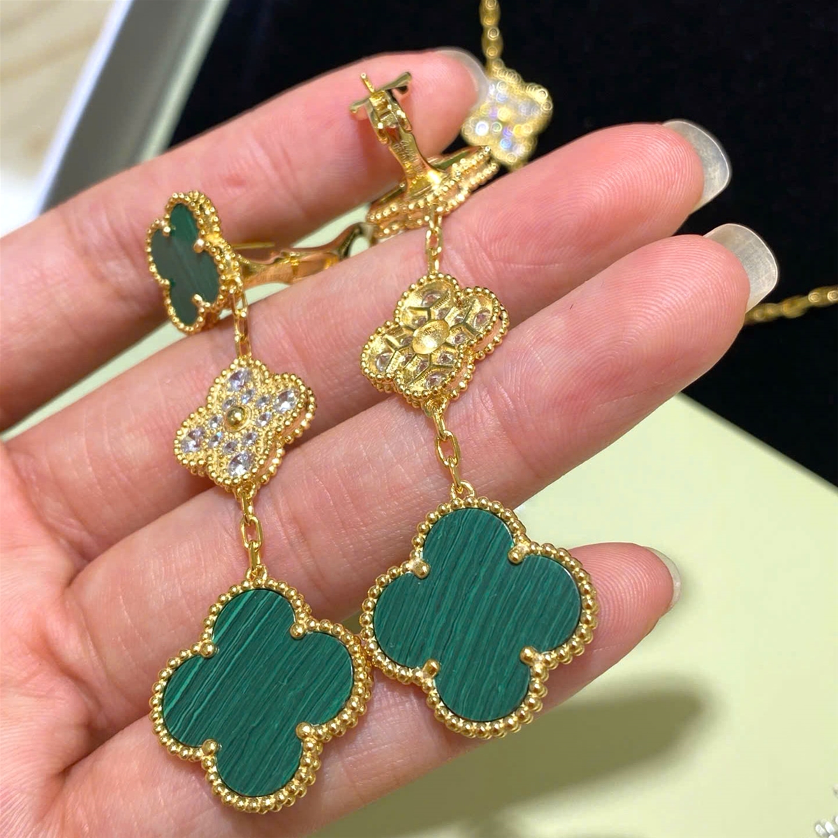 Bông tai hoa xanh ngọc Van Cleef cao cấp