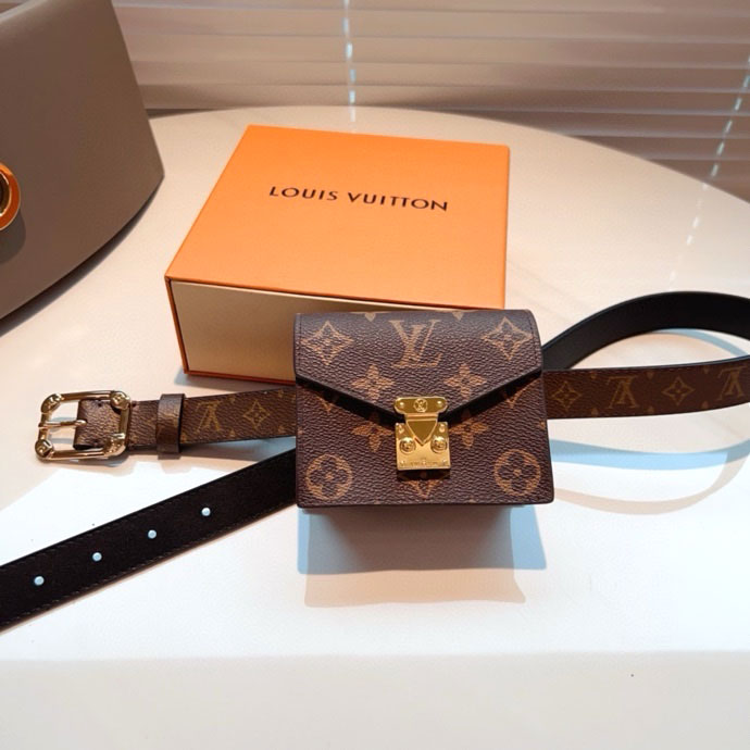 Dây lưng kèm ví bấm hoa nâu Louis Vuittion cao cấp