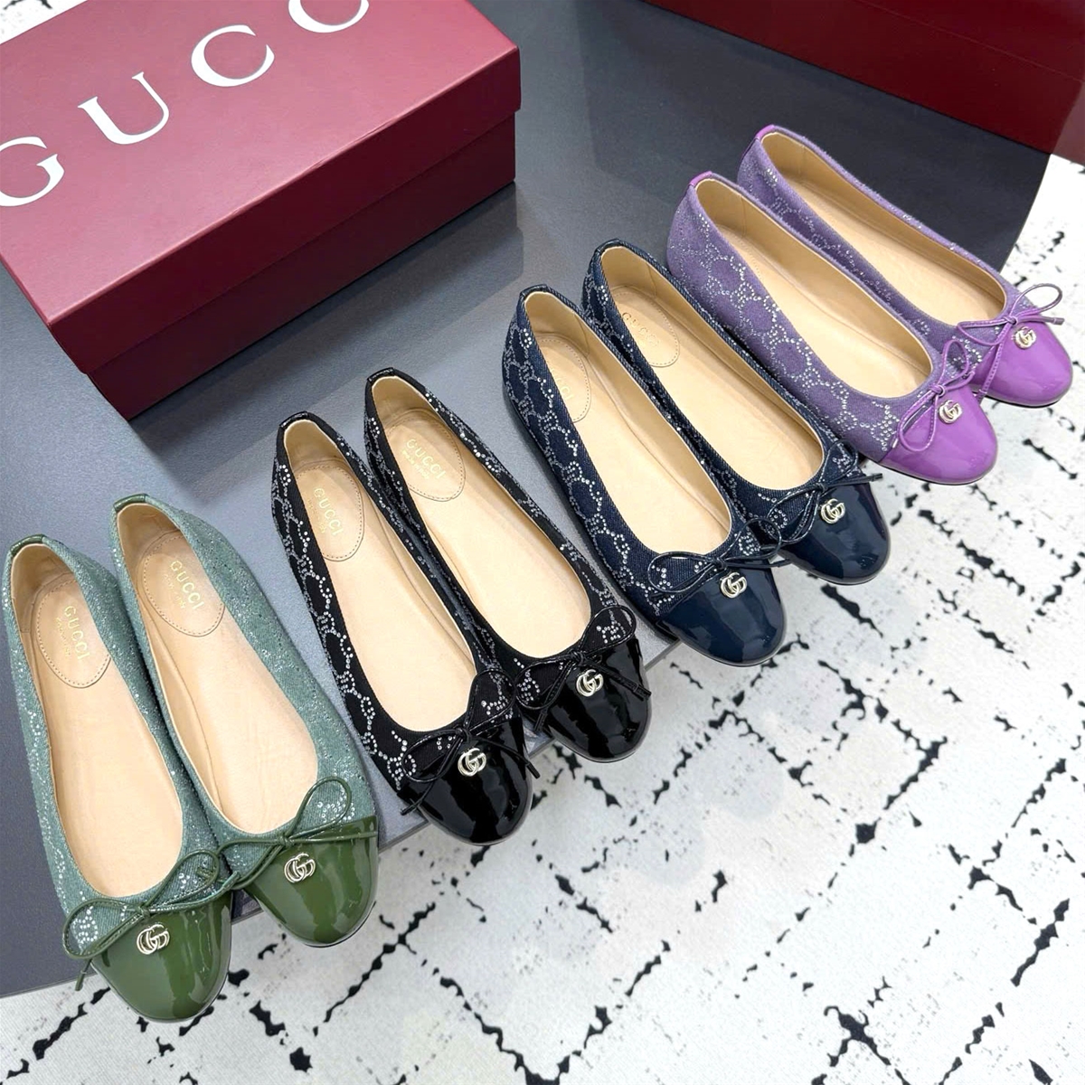 Trang chủ Giầy nữ Super Giầy búp bê Gucci phối vải và da bóng siêu cấp