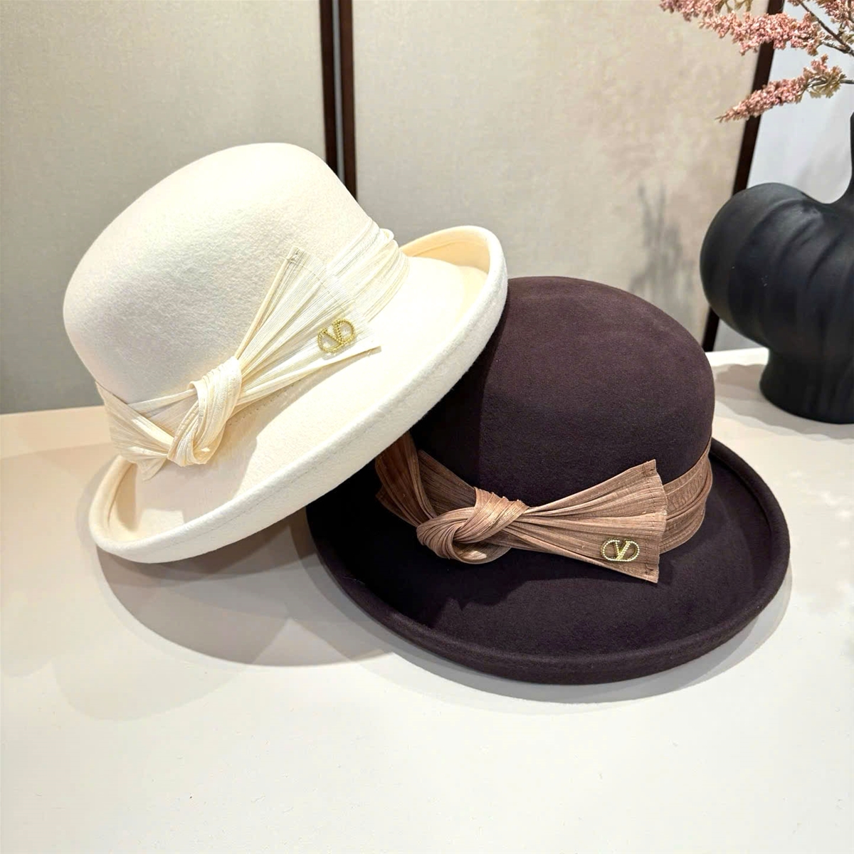 Trang chủ Phụ kiện thời trang Mũ dạ vàng Valentino đai mũ nơ cao cấp