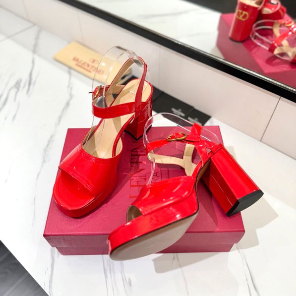 Sandal quai ngang da bóng gót trụ Valentino cao cấp