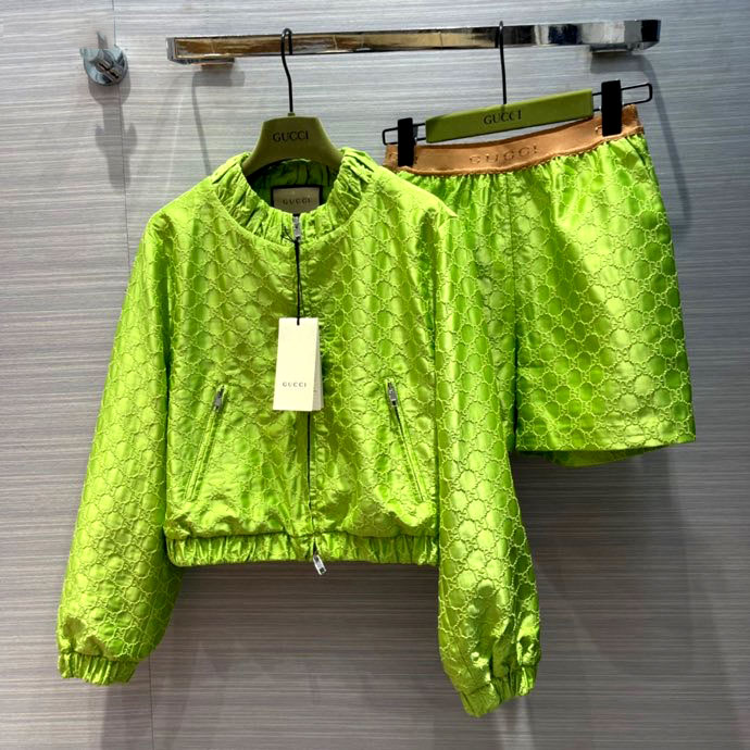 Set bộ khoác cổ tròn ngắn cạp bo Gucci cao cấp