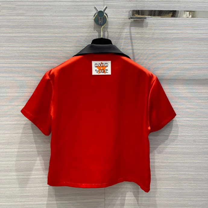 Áo họa tiết ô tay cộc Miu Miu cao cấp