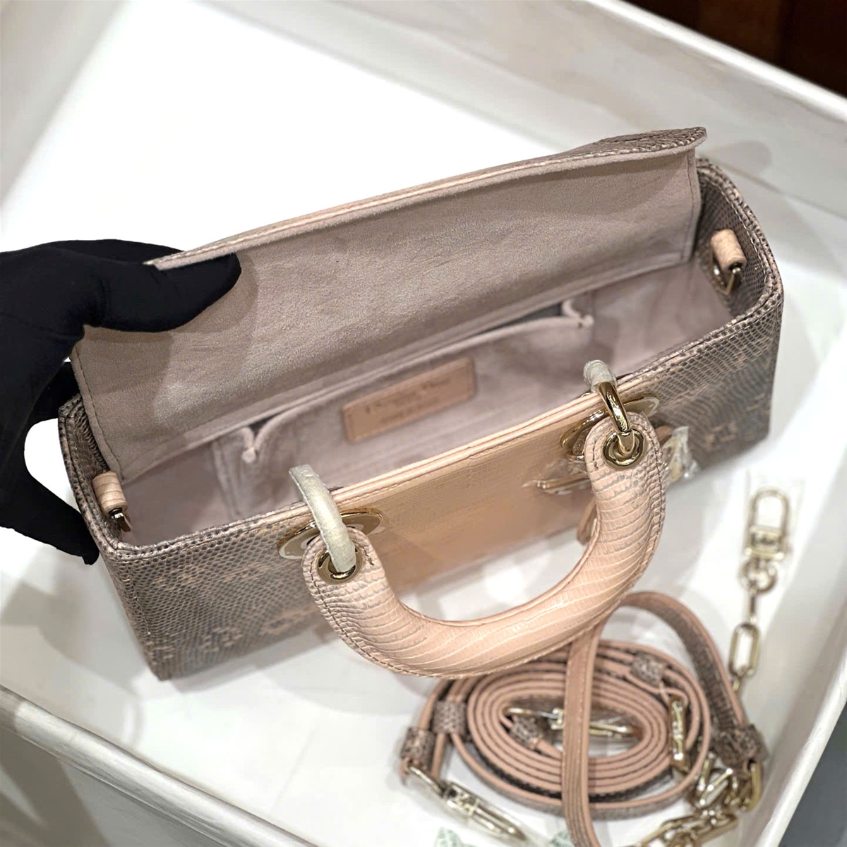 Túi xách Dior da thằn lằn màu hồng nhạt siêu cấp