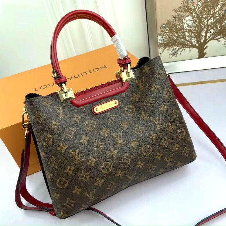 Túi xách LV da hoa nâu super tay xách viền da đỏ