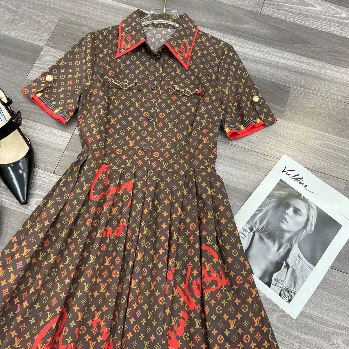 Váy điểm màu hoa nâu hiệu LV tay cộc