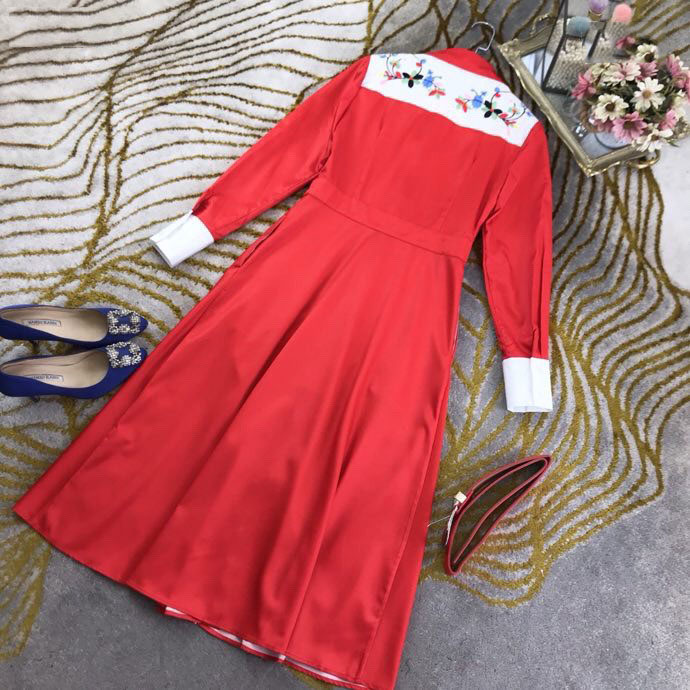 Váy đỏ thêu hoa hai màu đỏ trắng siêu cấp
