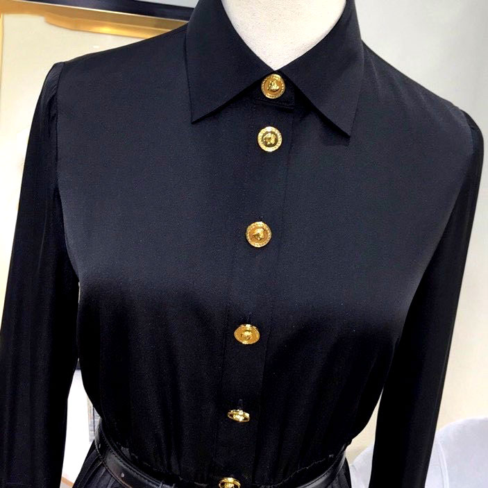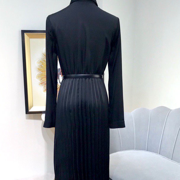 Váy lụa cổ bẻ thắt đai tay dài hiệu Celine siêu cấp