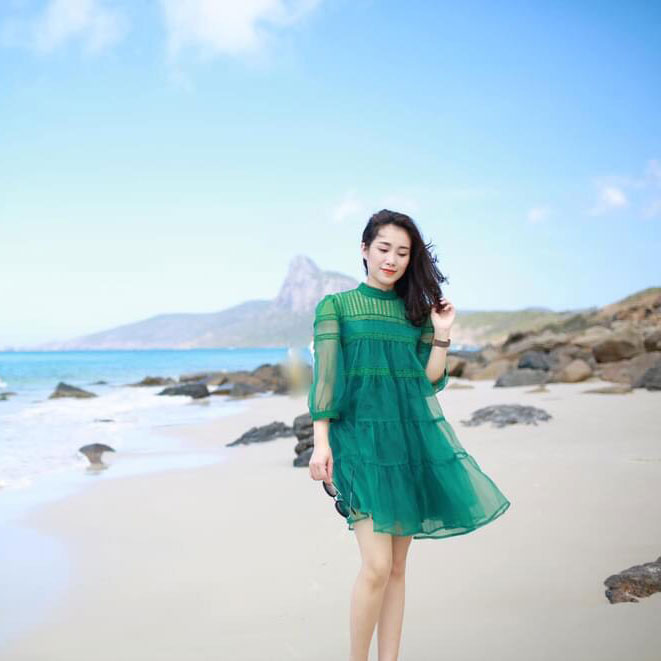 Váy nữ chất Voan xoè 2 màu phối hoa ren cao cấp