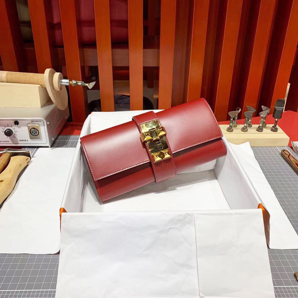 Túi xách dáng bầu da bóng đỏ sậm khóa vàng Ysl siêu cấp