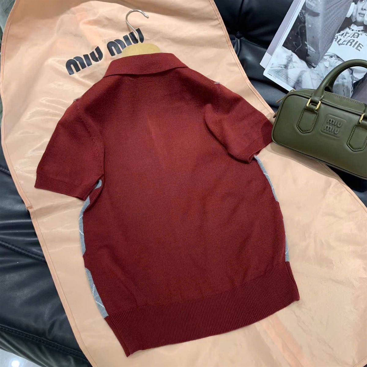 Áo họa tiết ô tay cộc Miu Miu cao cấp