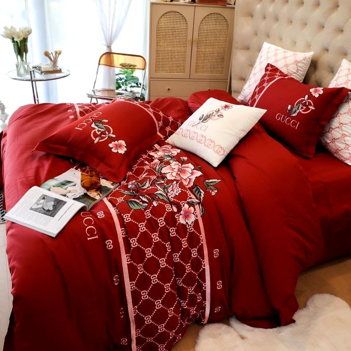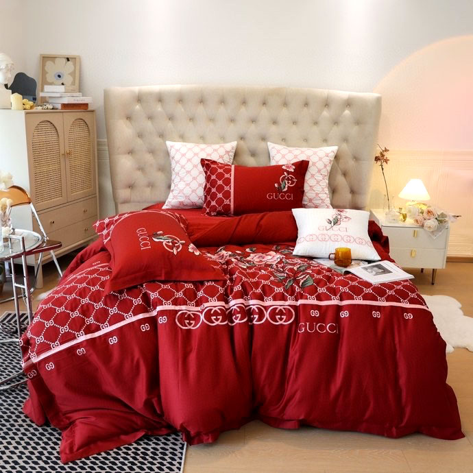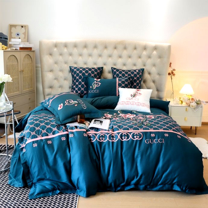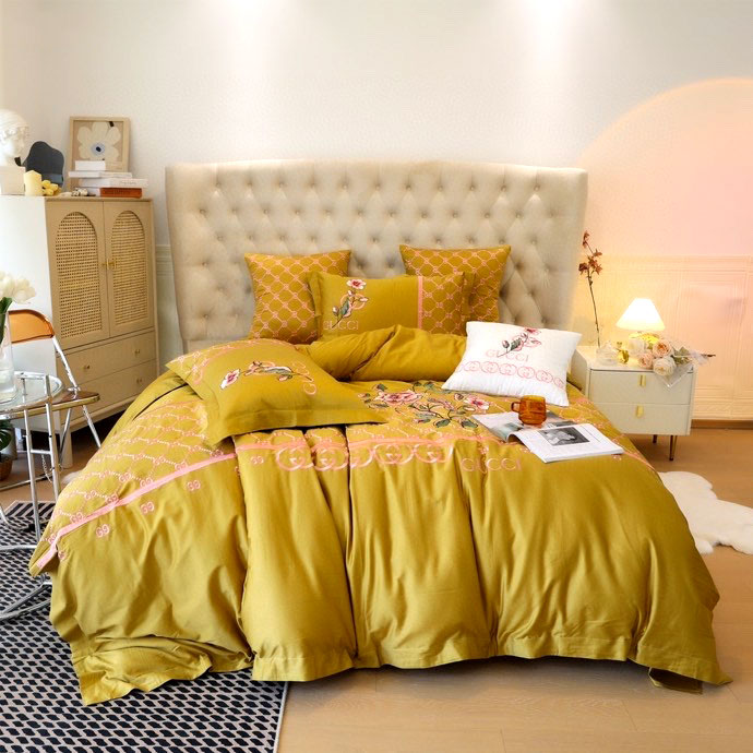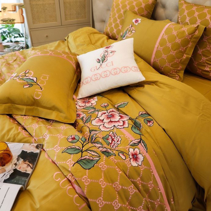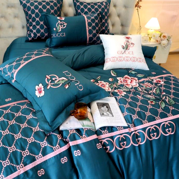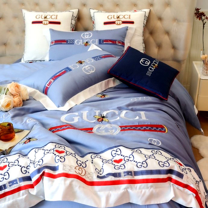 Bộ ga gối họa tiết chất Cotton Gucci cao cấp