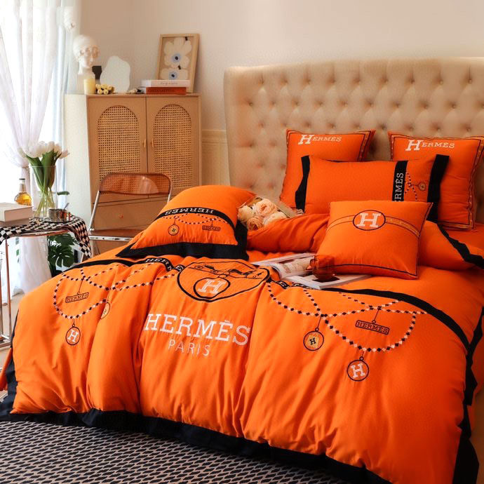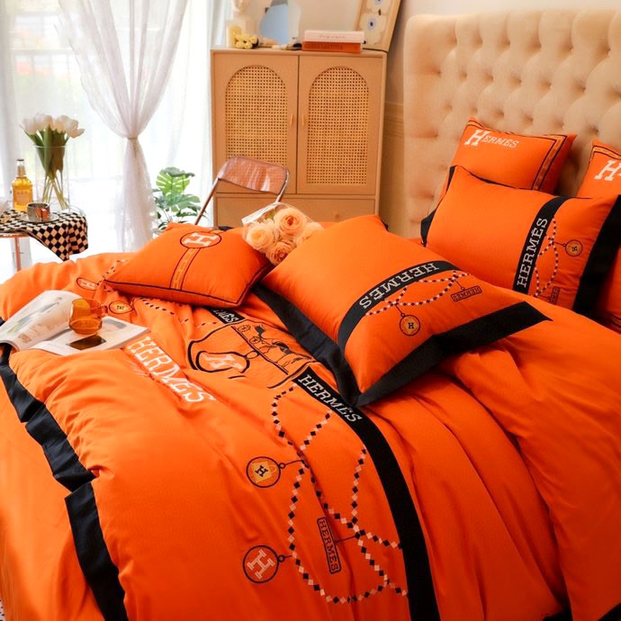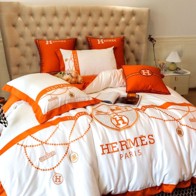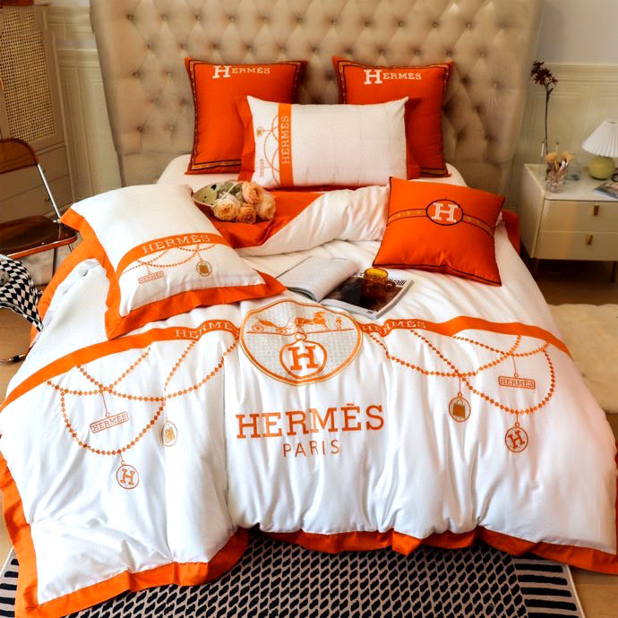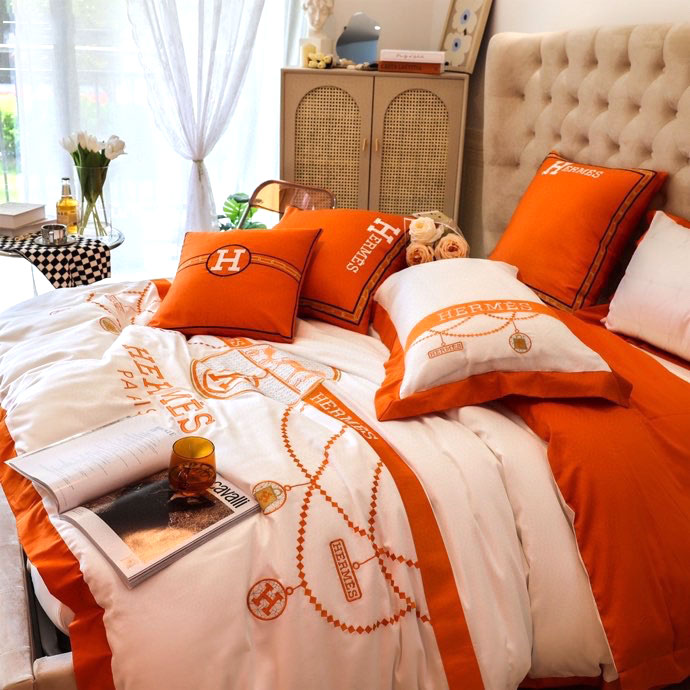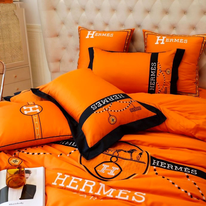 Bộ ga gối họa tiết đẹp mắt Herms cottion siêu cấp