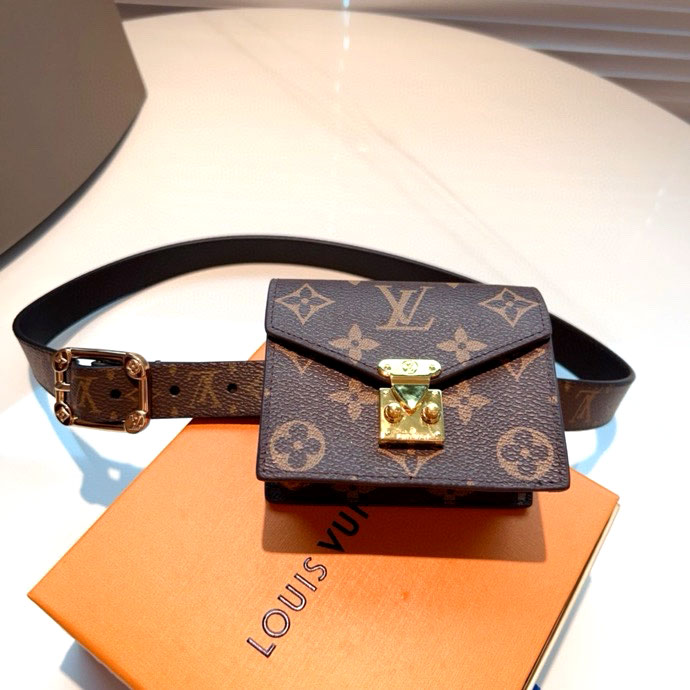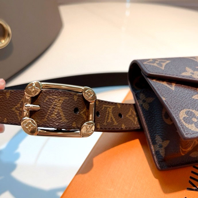 Dây lưng kèm ví bấm hoa nâu Louis Vuittion cao cấp