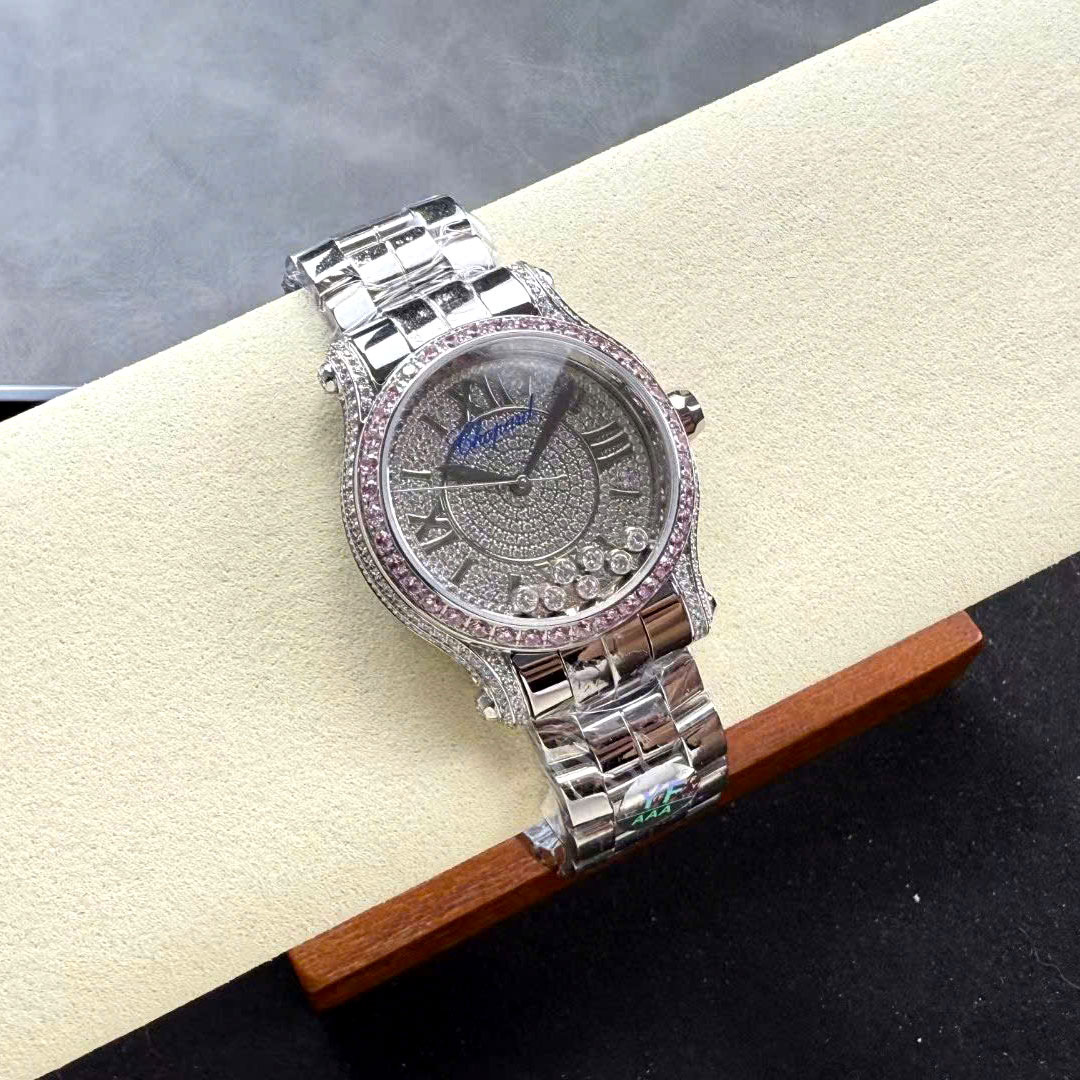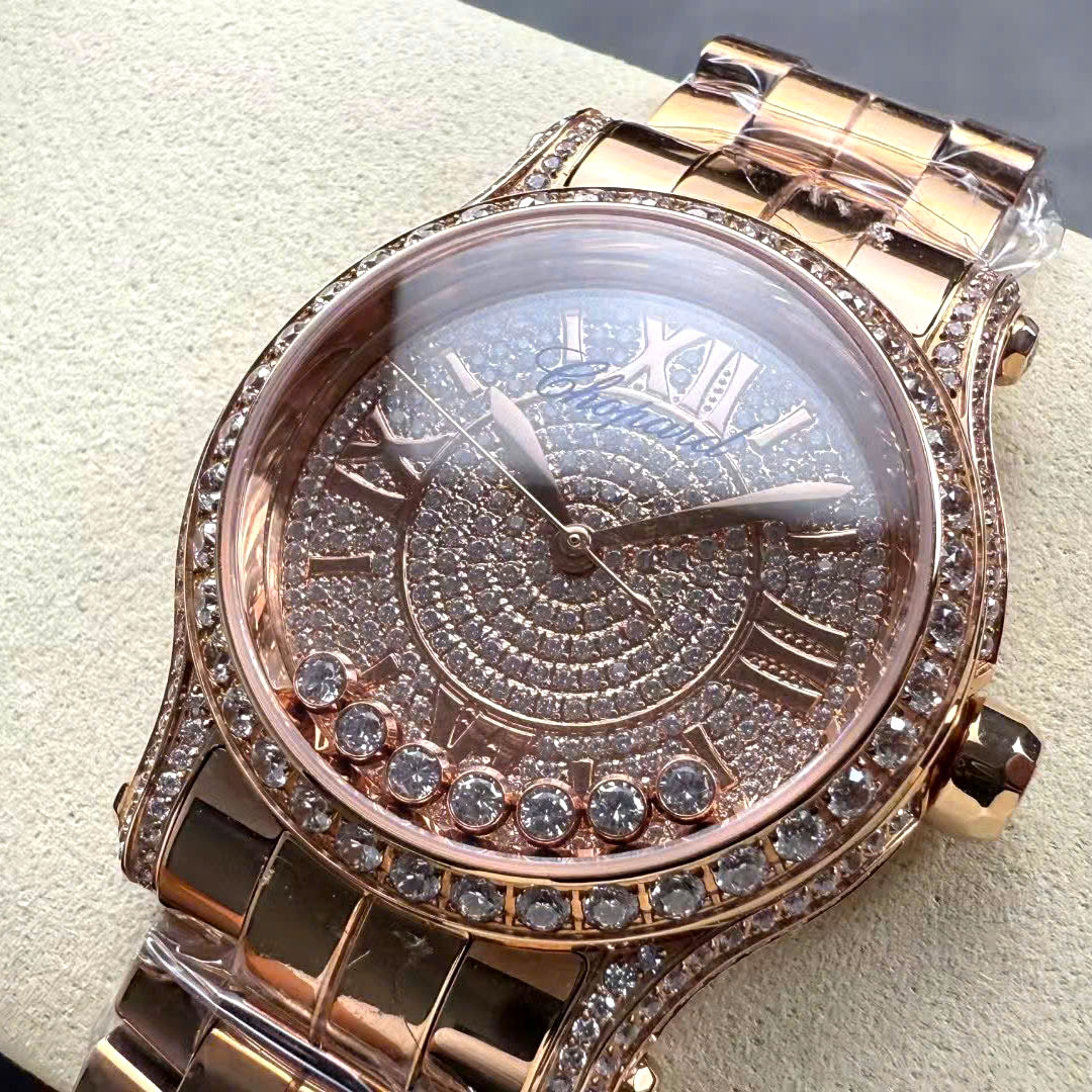 Đồng hồ nạm đá viền hồng Chopard siêu cấp
