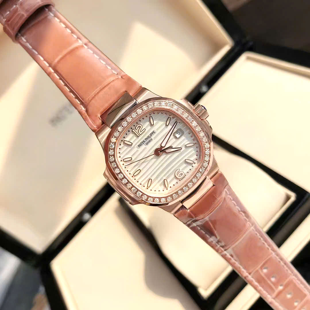 Đồng hồ nữ mặt viền đá quai da Pake Philips likeauth