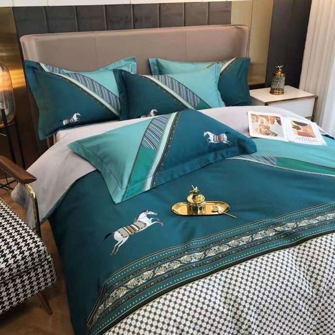 Bộ ga gối họa tiết đẹp mắt Herms cottion siêu cấp