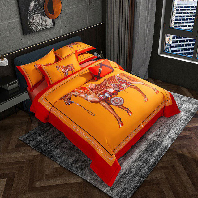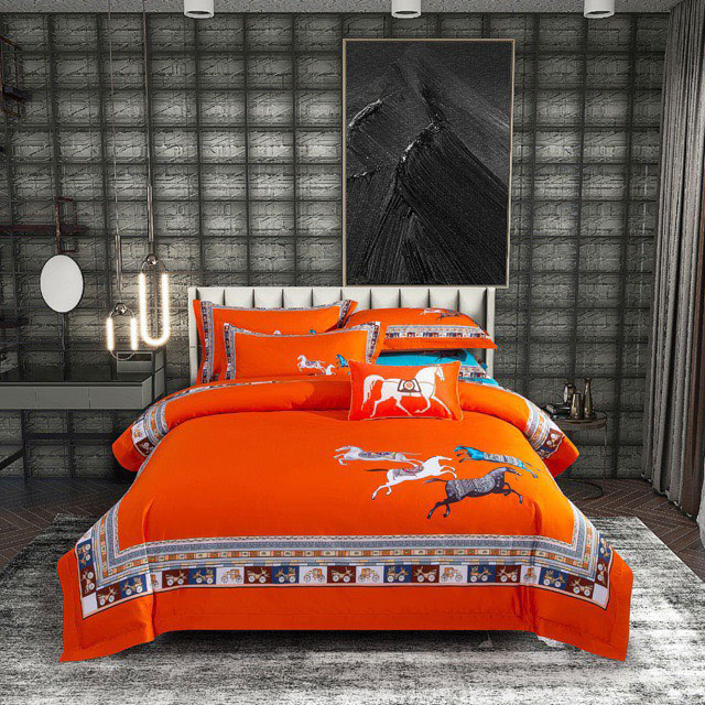Bộ ga gối họa tiết đẹp mắt Herms cottion siêu cấp