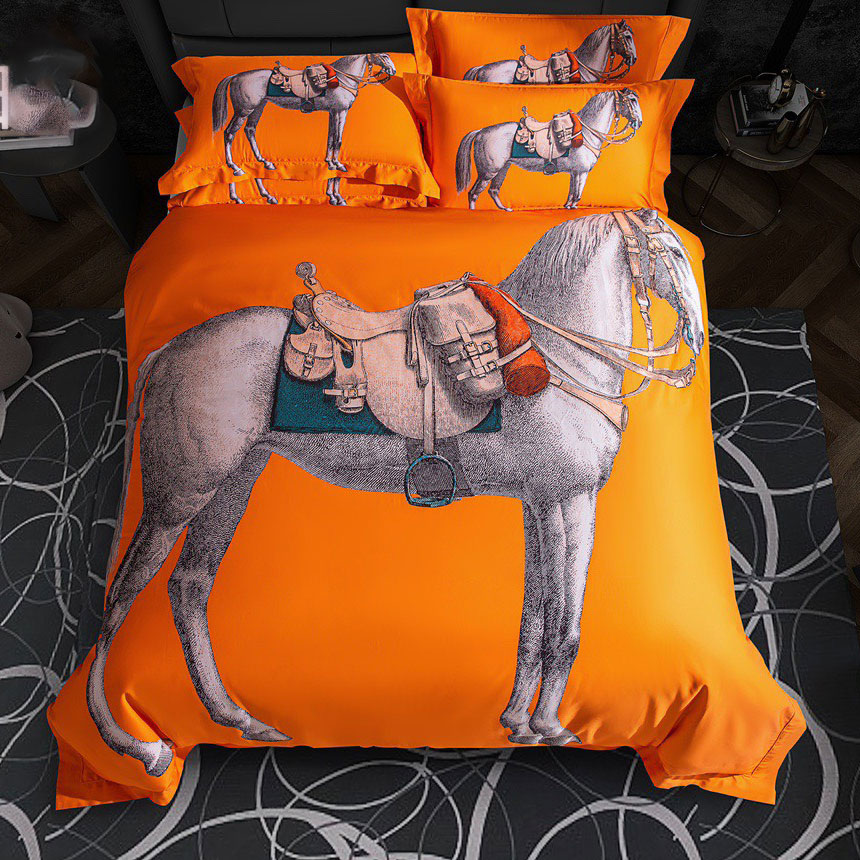 Ga gối cotton vàng cam họa tiết ngựa Herms cao cấp