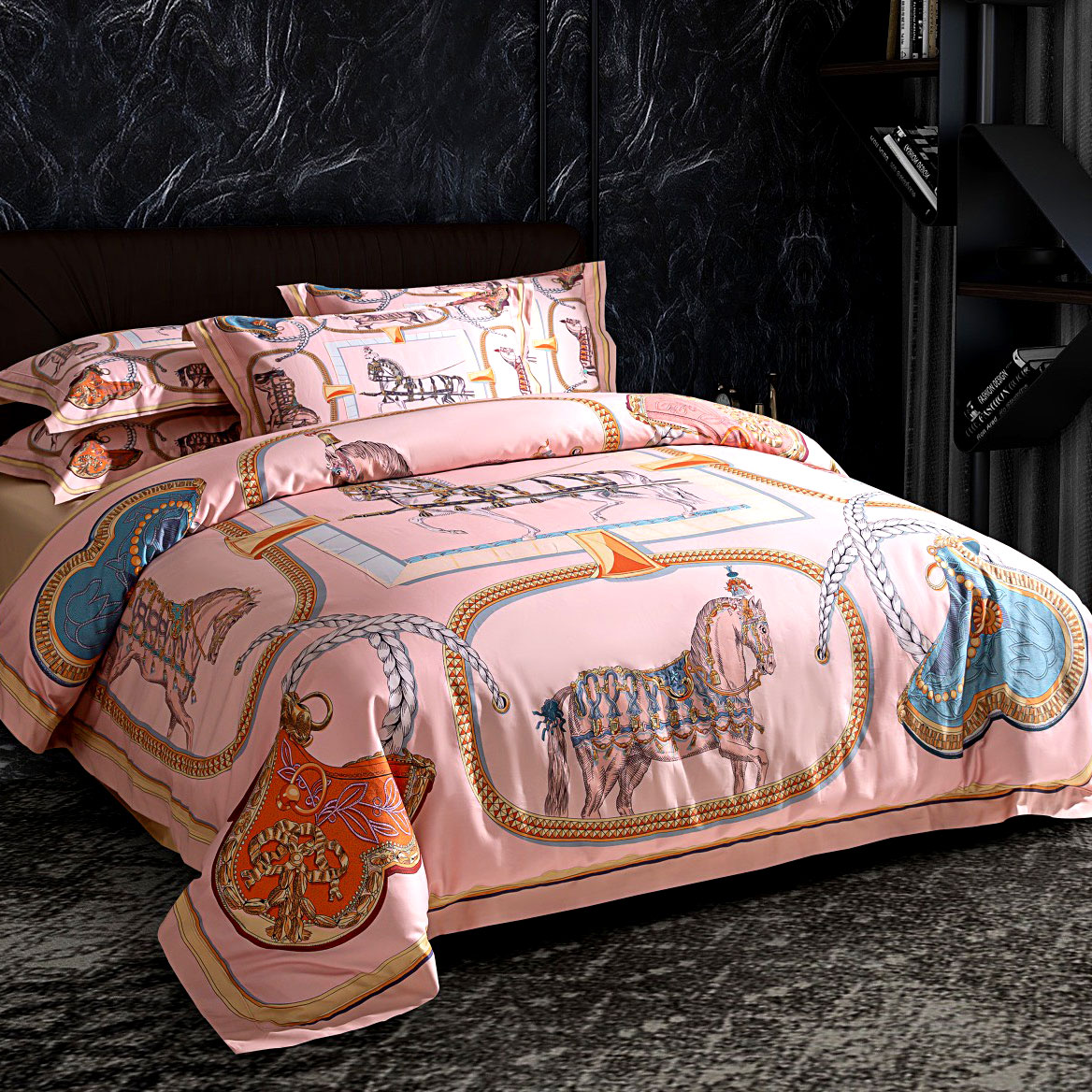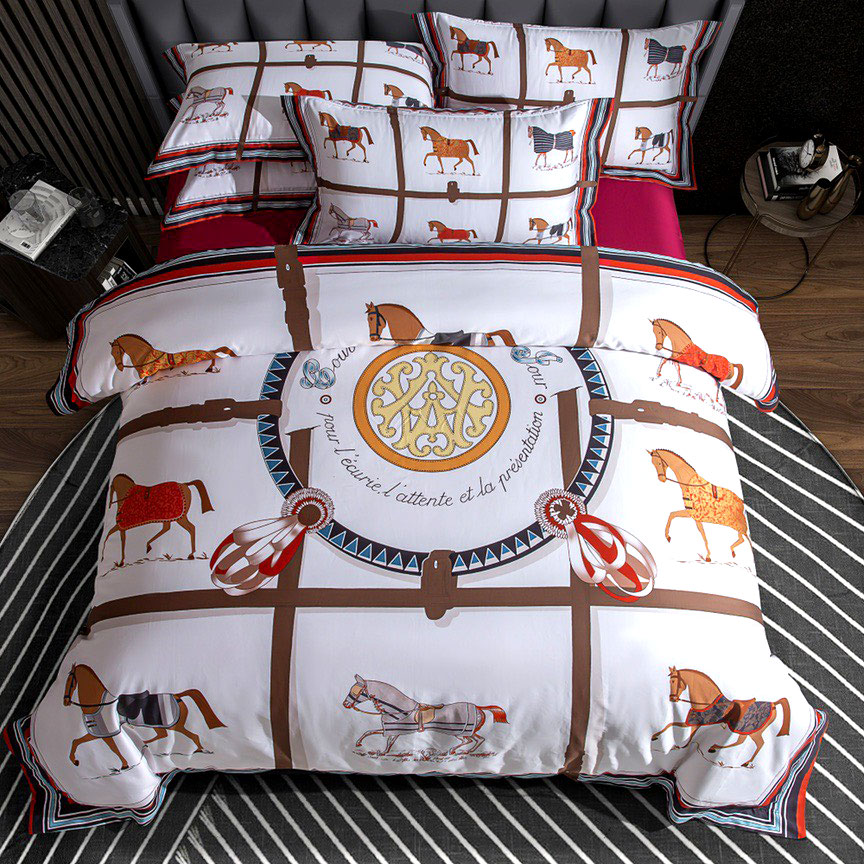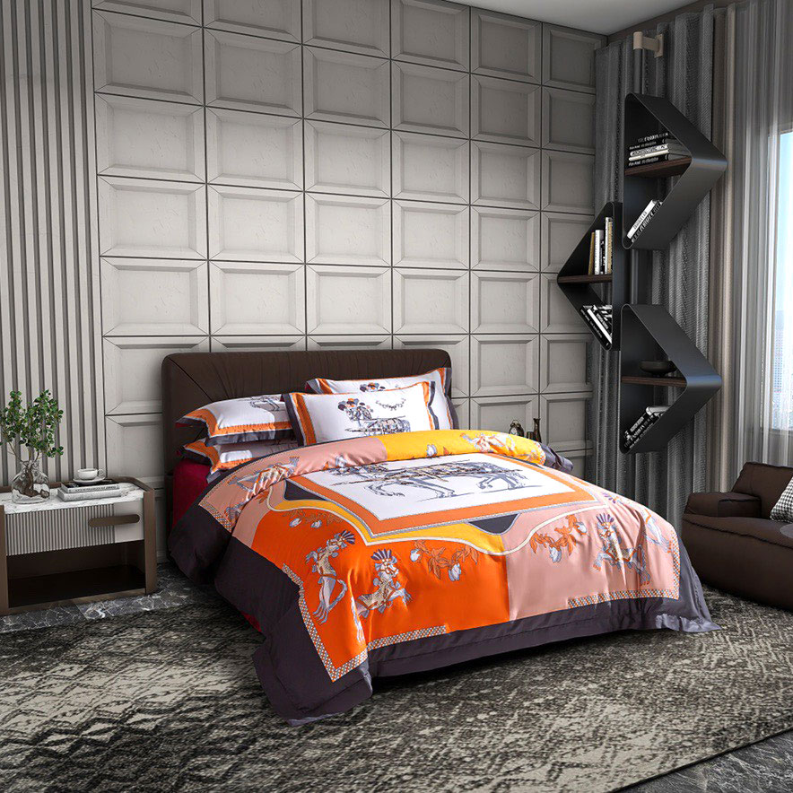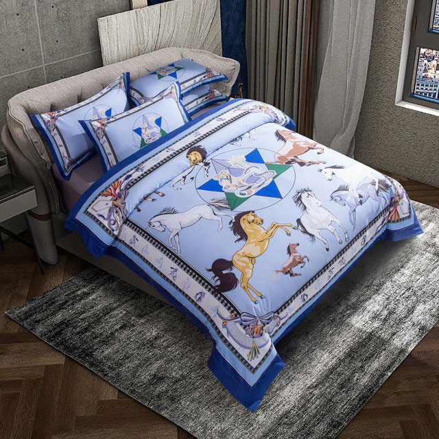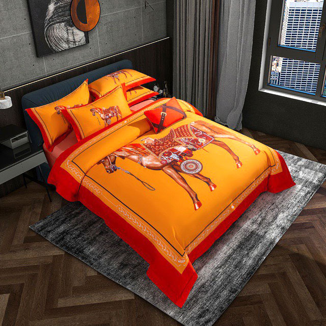 Bộ ga gối họa tiết đẹp mắt Herms cottion siêu cấp