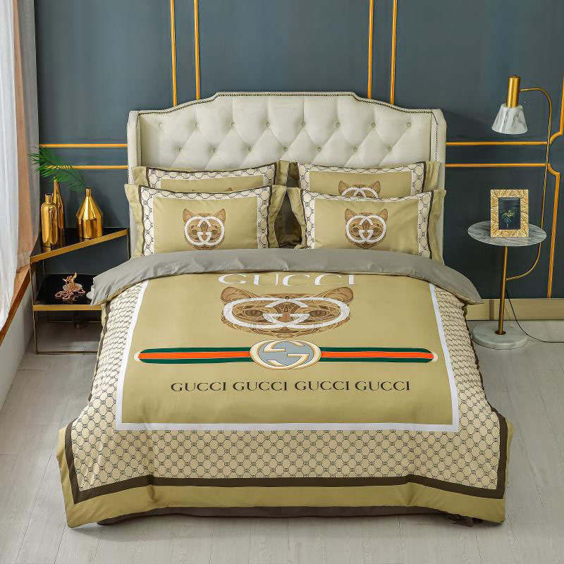 Bộ ga gối họa tiết chất Cotton Gucci cao cấp