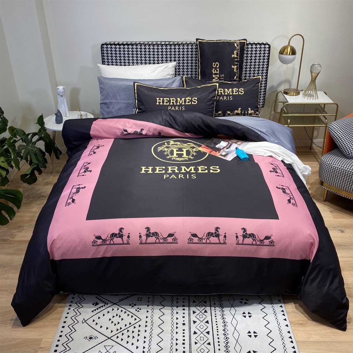 Bộ ga gối họa tiết đẹp mắt Herms cottion siêu cấp