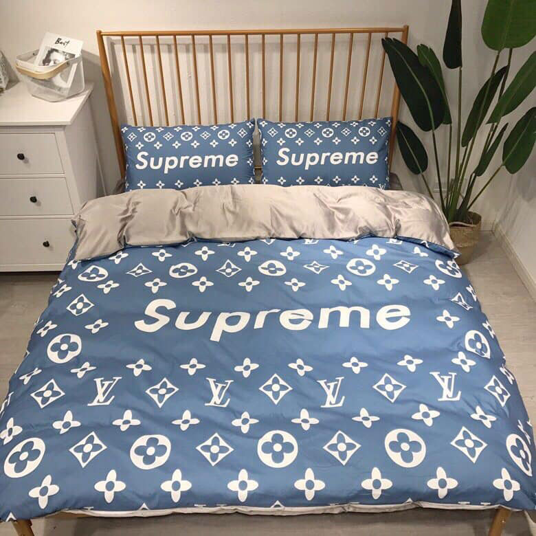 Set bộ ga gối hiệu LV Supreme bao gồm: