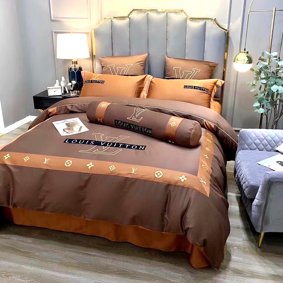 Ga gối phối viền 2 màu nâu đậm nhạt LV cao cấp