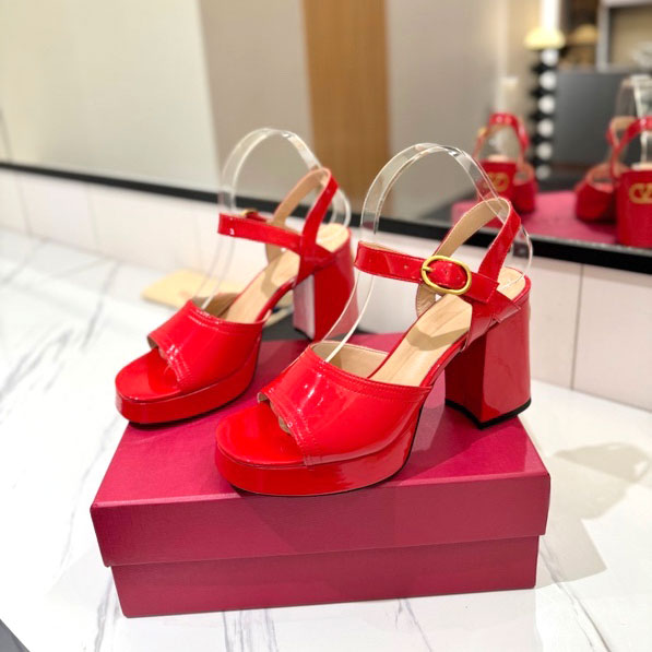Sandal quai ngang da bóng gót trụ Valentino cao cấp