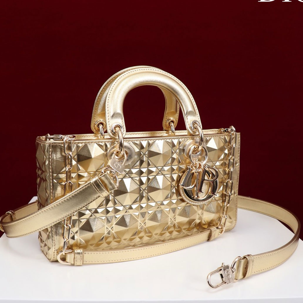 Túi xách Dior da bóng Lady khóa vàng likeauth