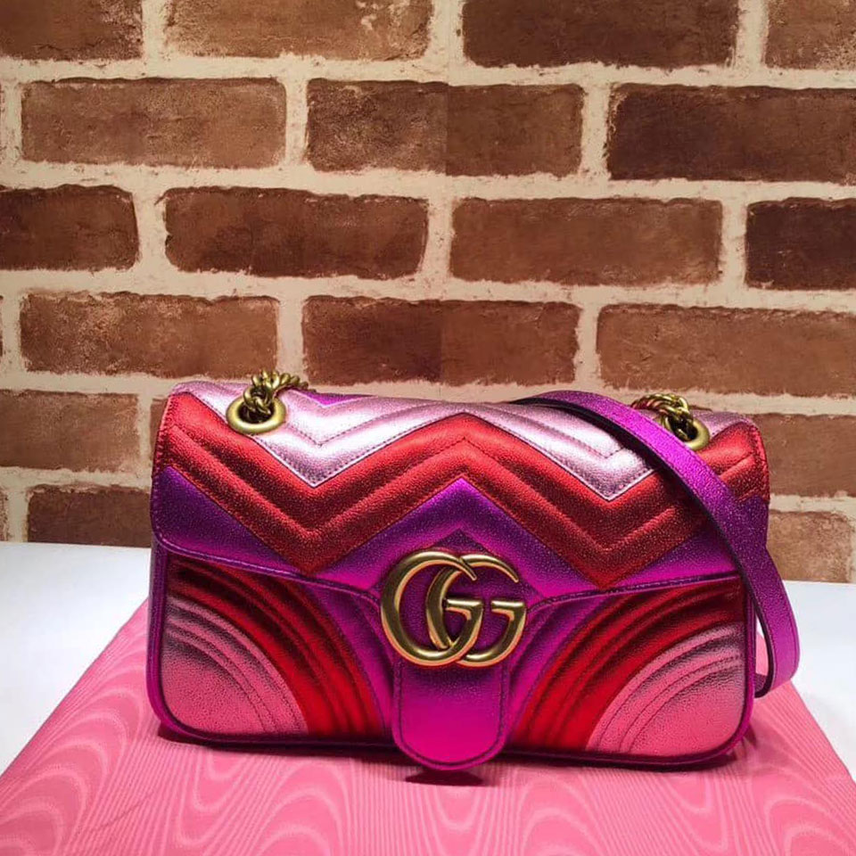 Túi Gucci da nhũ 2 màu khóa vàng siêu cấp