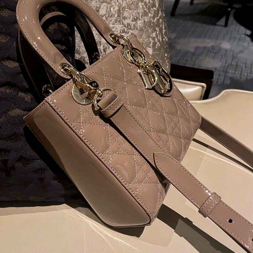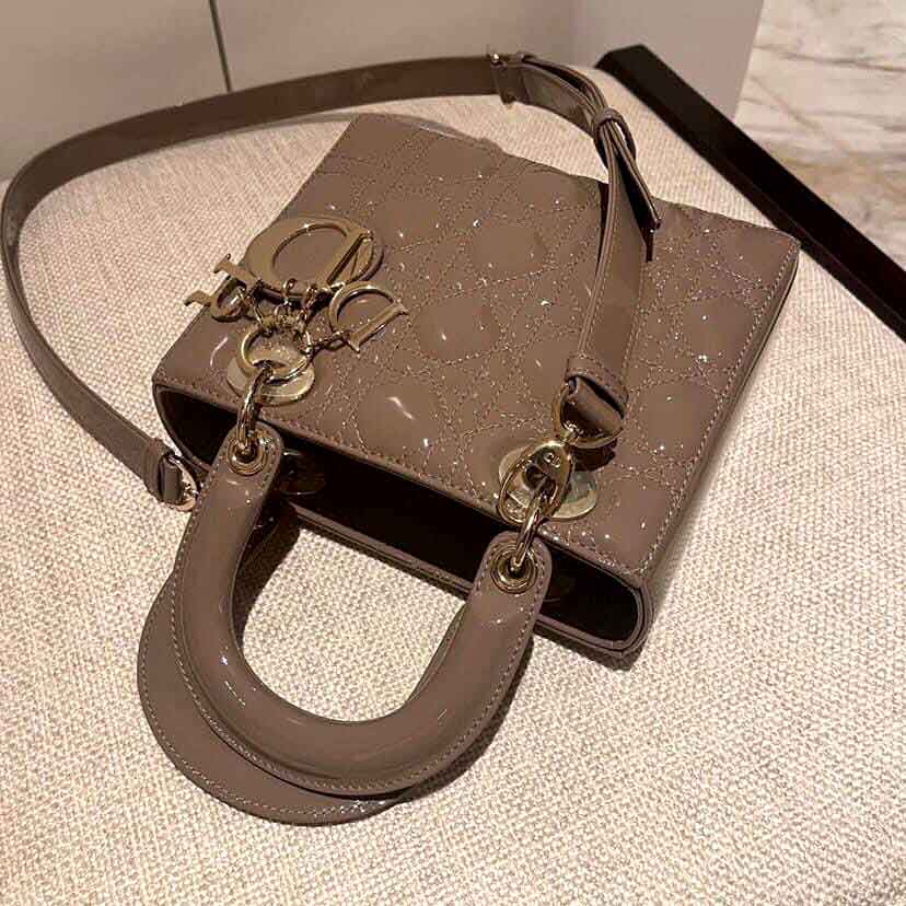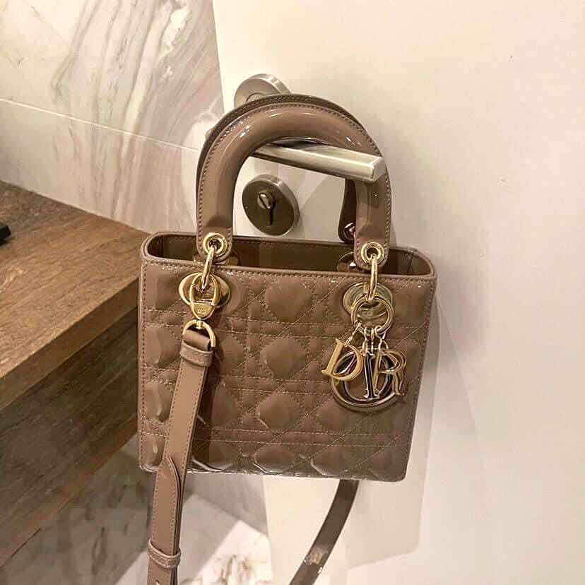 Túi xách Dior da bóng Lady khóa vàng likeauth