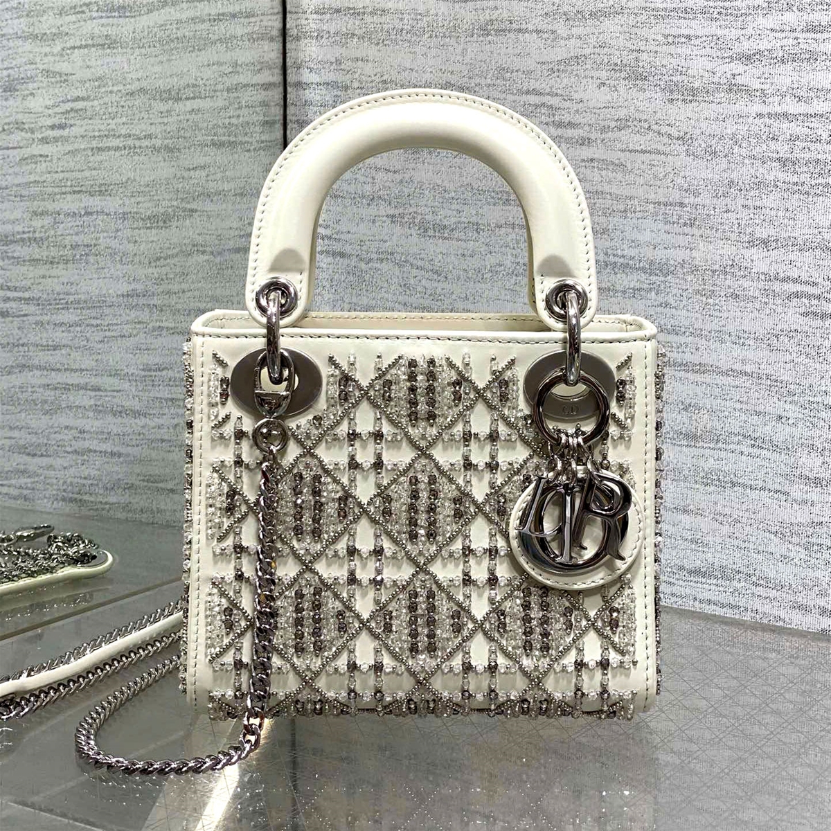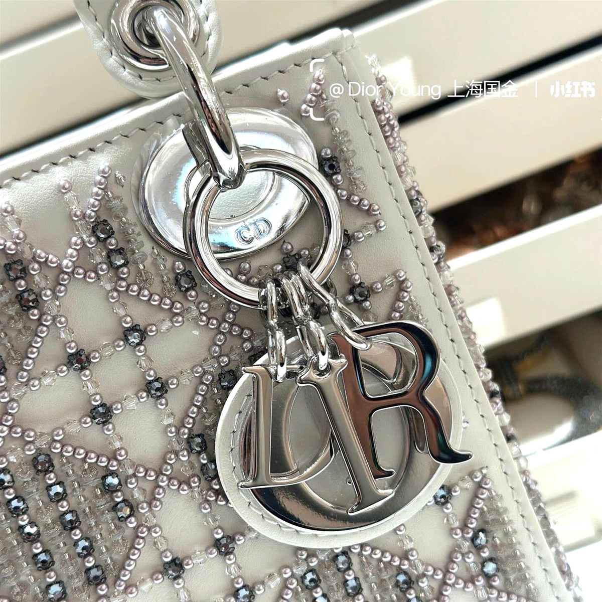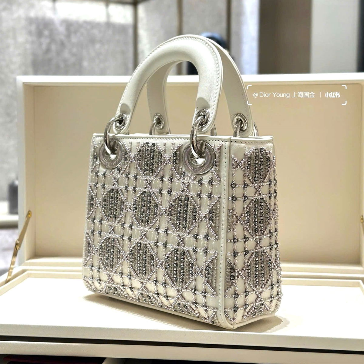 Túi xách Dior đính cườm khóa trắng da mềm VIP