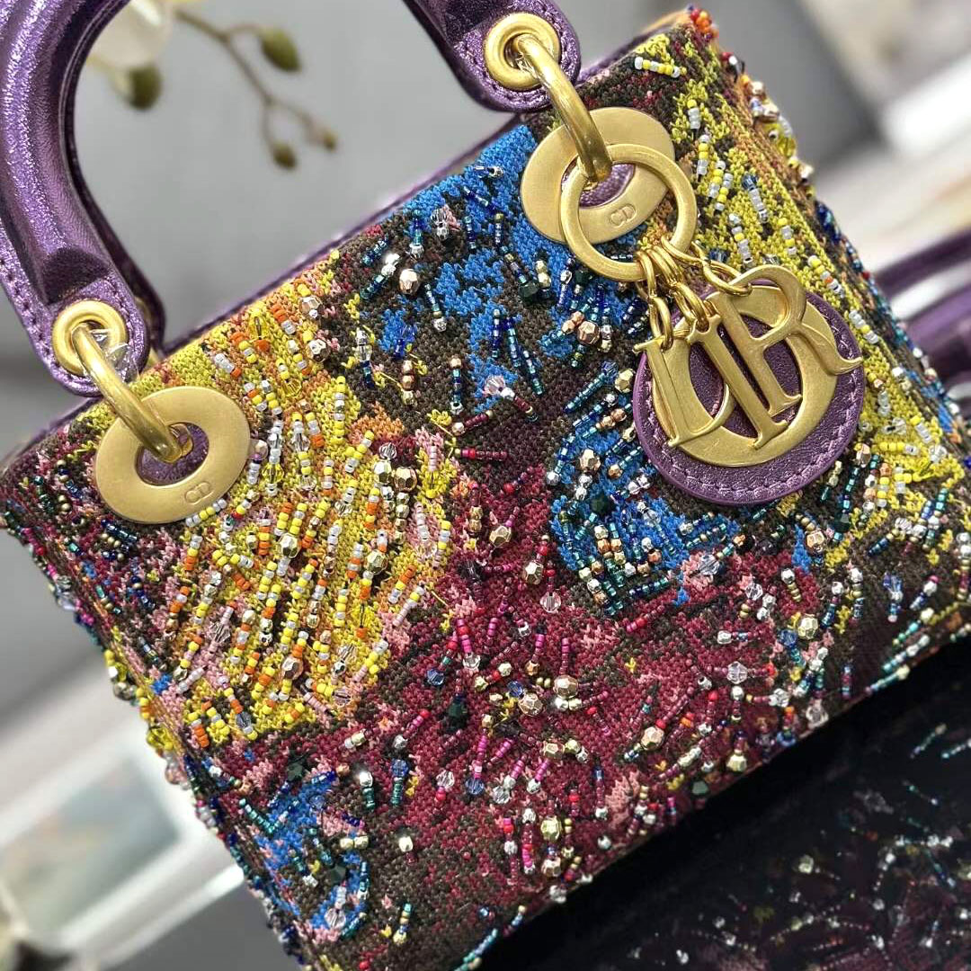 Túi xách nữ da bóng đính hạt sặc sỡ hiệu Dior siêu cấp