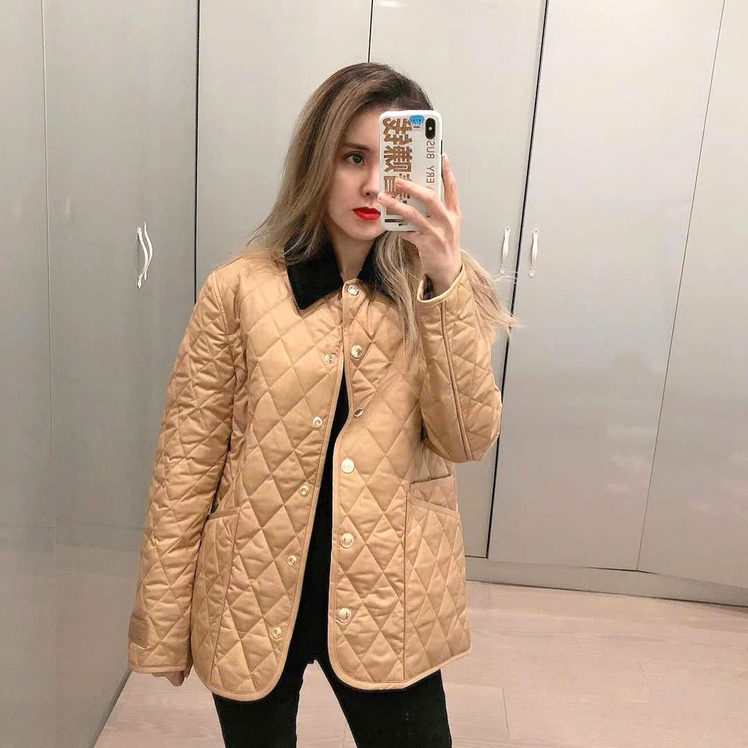 Áo khoác cổ nhung Burberry trần trám dáng suông cao cấp