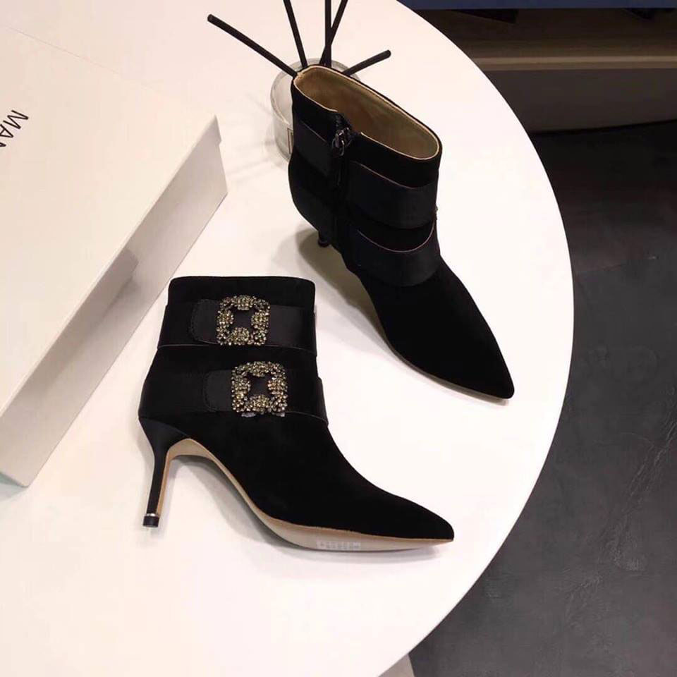 Bốt da lộn cao gót 2 màu đen nude siêu cấp
