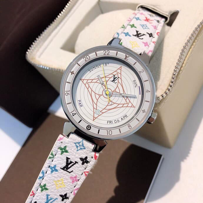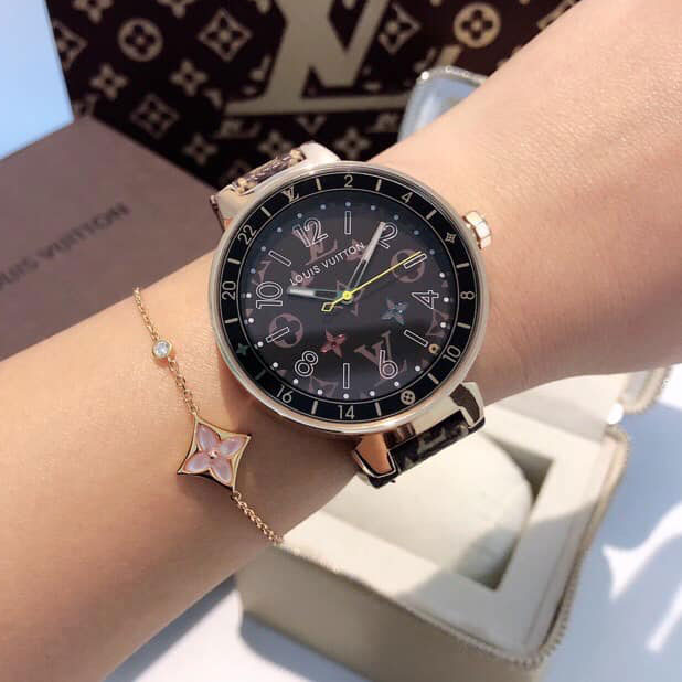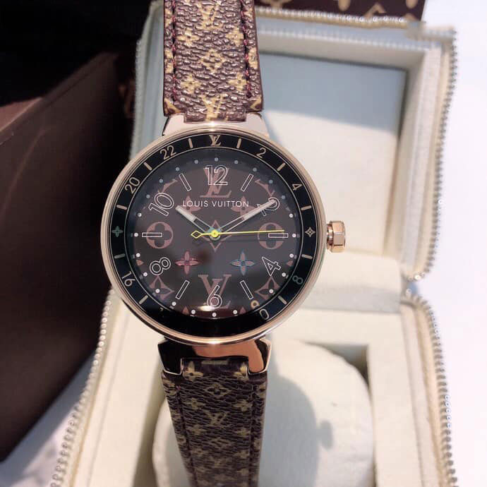 Đồng hồ hiệu Louis Vuitton dây da ô xanh siêu cấp